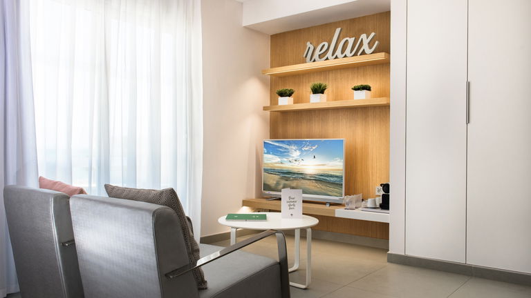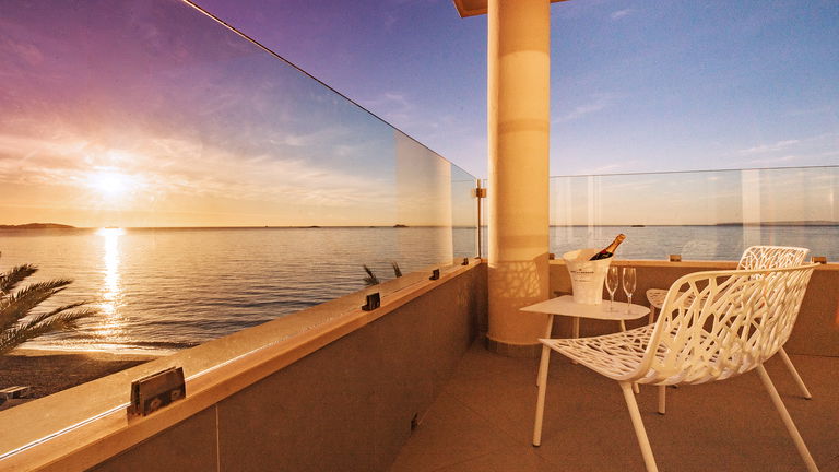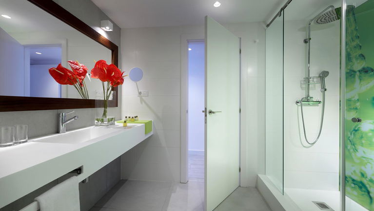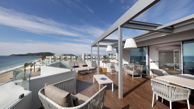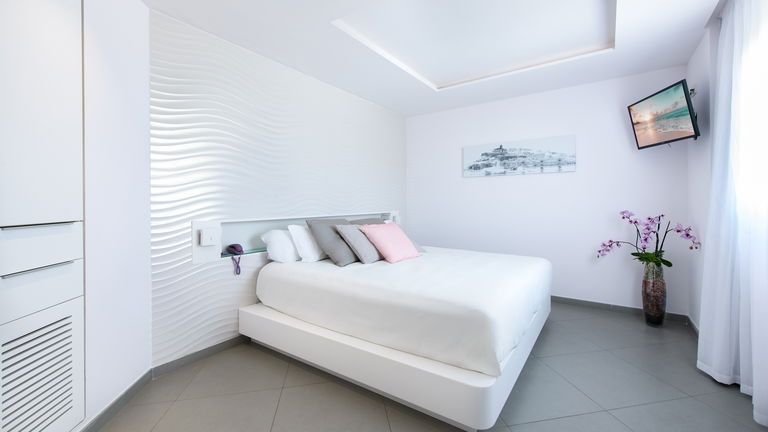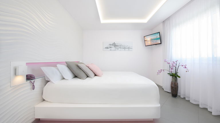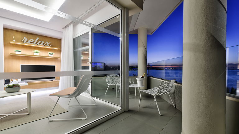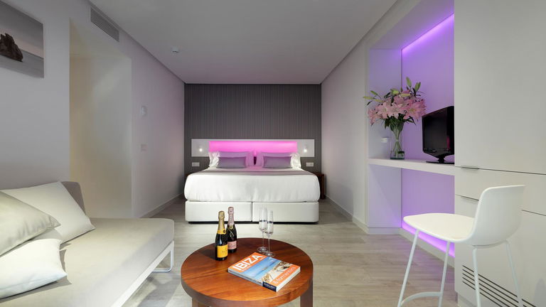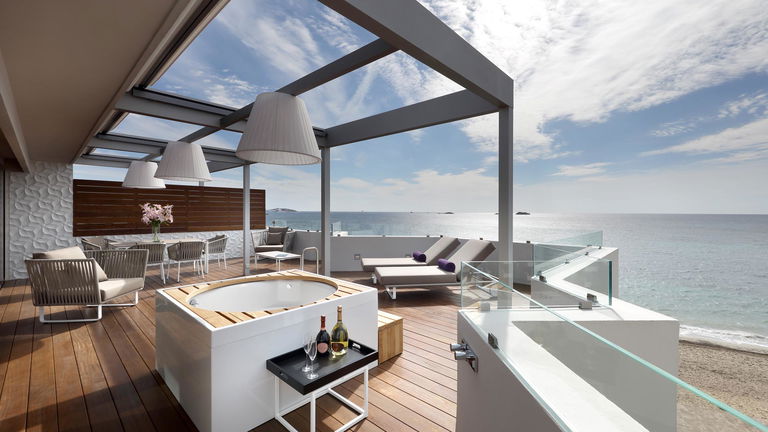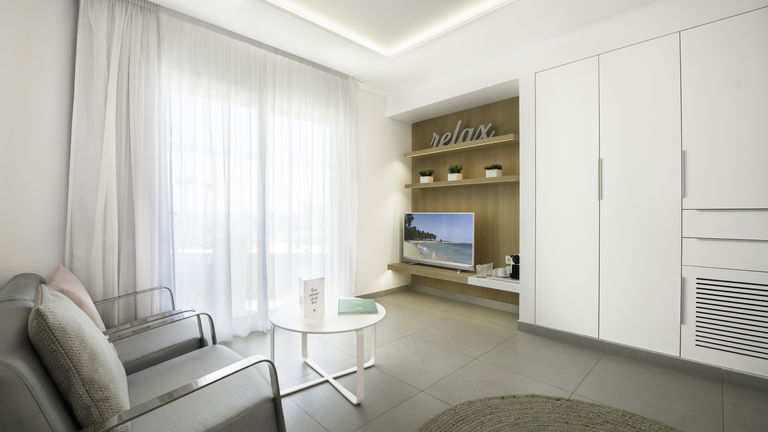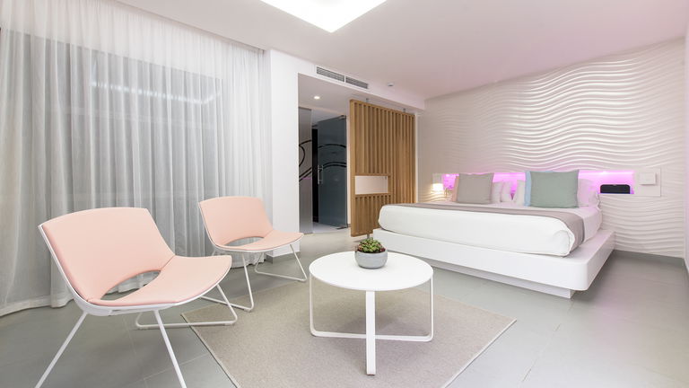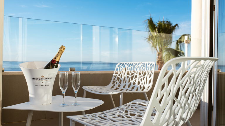 Spaziose suite rinnovate di recente con 48 m² con vista laterale sul mare, luci a LED per cromoterapia, aromaterapia, TV LCD, WiFi gratuito, aria condizionata, mini frigo, cassaforte gratuita in camera, asciugacapelli e terrazza o balcone.